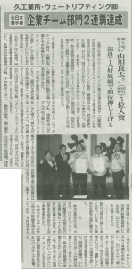 11月に青森県で行われた、内閣総理大臣杯 第62回全日本社会人ウエイトリフティング選手権大会にて、団体8位入賞、企業部門優勝、見事部門2連覇を成し遂げたウエイトリフティング部。
