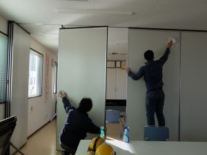 お世話になった事務所や工場、厚生棟などあらゆる場所を掃除していきます。